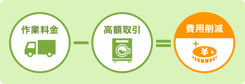 買取・無料回収をまとめて行うことで安価な費用で回収。
