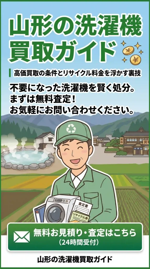 洗濯機や衣類乾燥機は「家電リサイクル法」の対象品目となるため、山形市の自治体の粗大ゴミとして処分することはできません。通常、処分には「リサイクル料金(約2,530円〜)+収集運搬費」がかかりますが、賢く手放すことでこの費用を無料、あるいはプラスにすることができます。