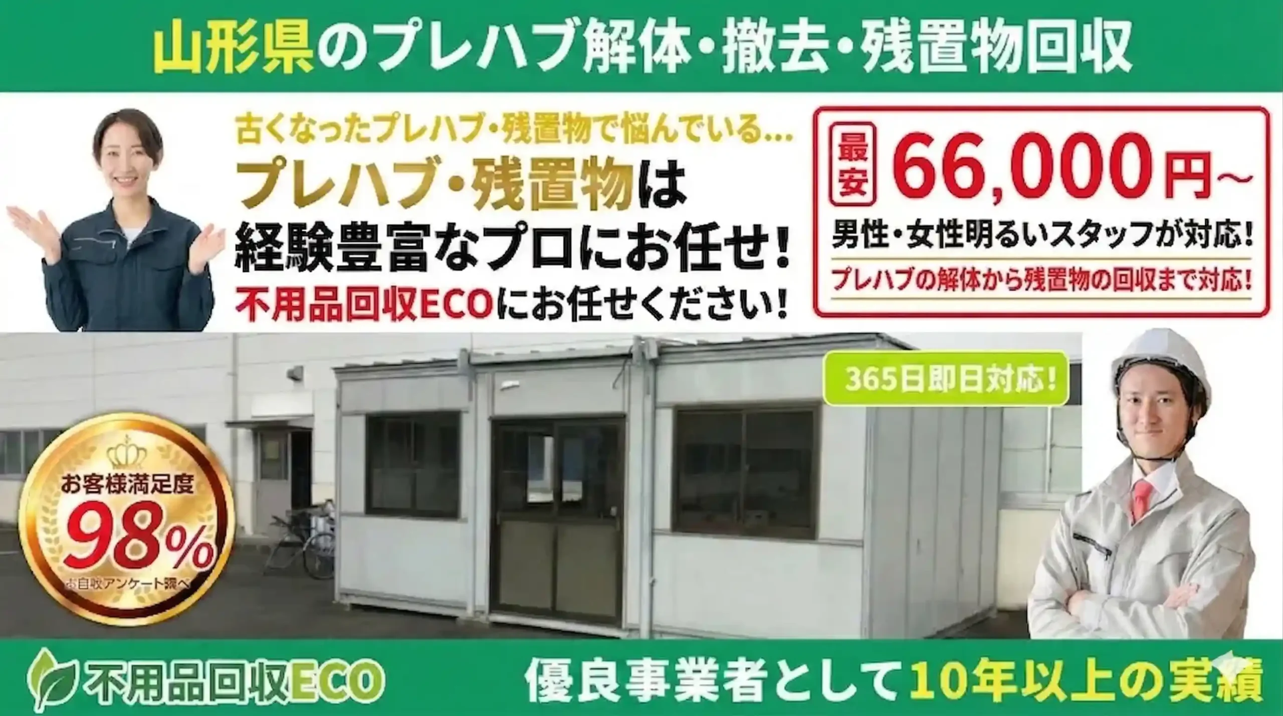 延床面積が80平方メートル(約24坪)を超える大型のプレハブ・倉庫を解体する場合、着工の7日前までに自治体(山形県や各市町村)へ「建設リサイクル法に基づく届出」を行う義務があります。 - 残置物の「不法投棄」リスクにご注意ください