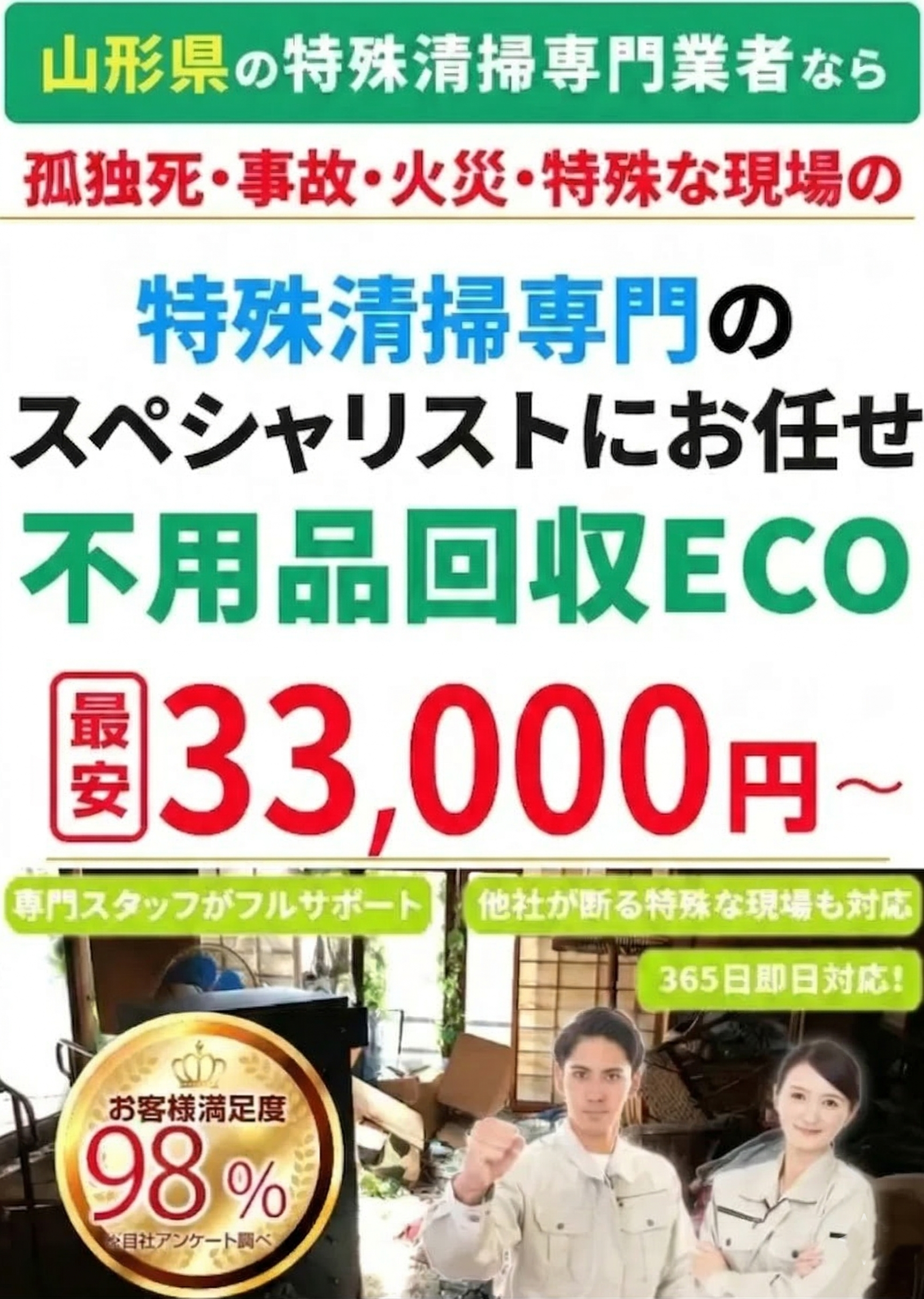 山形の特殊清掃・孤独死現場も最短即日対応!